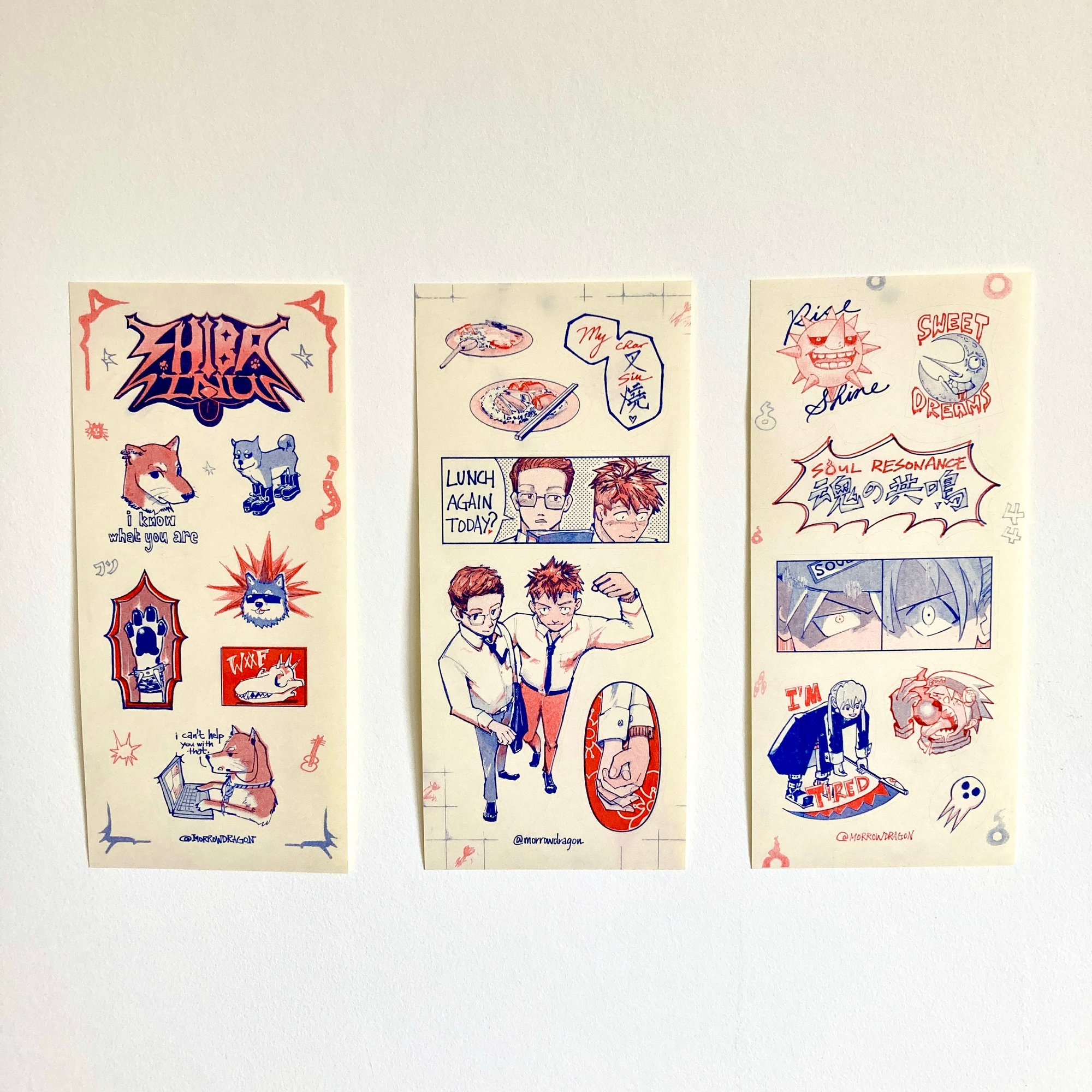 Risograph print (Medium Blue, Red) on sticker paper